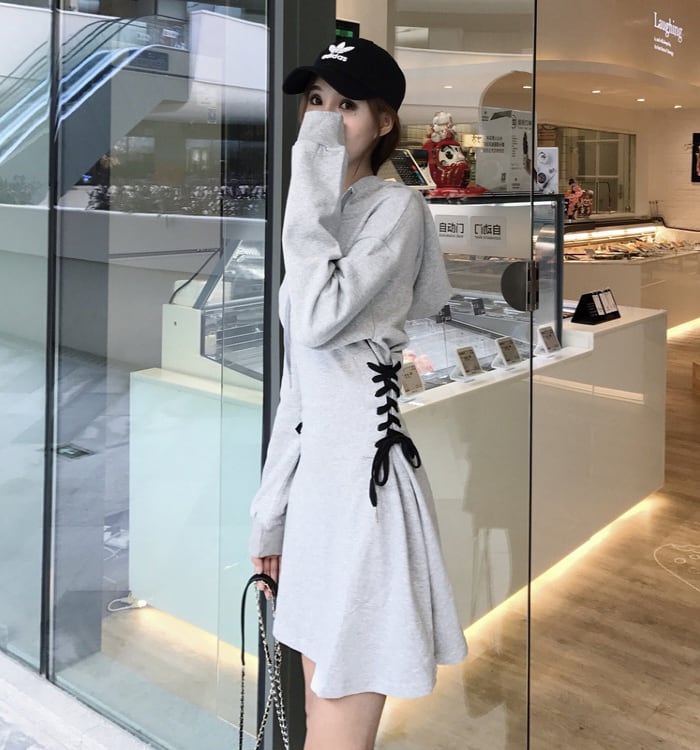サイドレースアップフレアパーカーワンピースholyholyレディースファッション