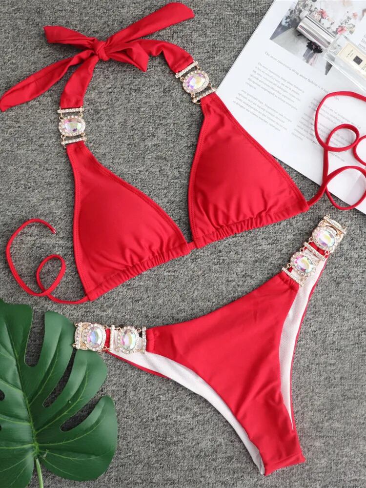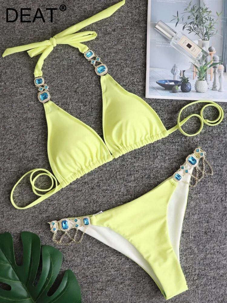 Deat 女性の中空アウトビキニセット、単色、レースアップホルター、ダイヤモンド水着、セクシーなパーティースーツ、新しい、夏、2ピース、2022、11xx1334 ビキニ Tシャツ T240619004624_01