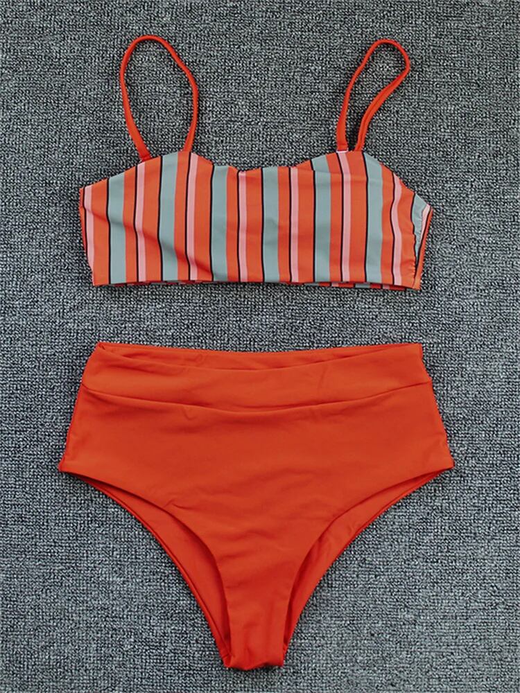 女性用ビキニセット,ストライプ水着,ハイウエスト水着,ツーピース水着,ビーチウェア,女性用ビキニ2023 ビキニ Tシャツ T240619004943_03