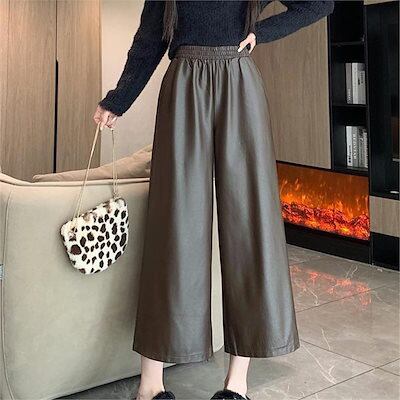2024年秋冬新作PUレザーパンツ レディース - カジュアルファッショナブルレトロゆったりワイドレッグパンツ小柄な体型に似合うストレートレッグパンツクロップドパンツ