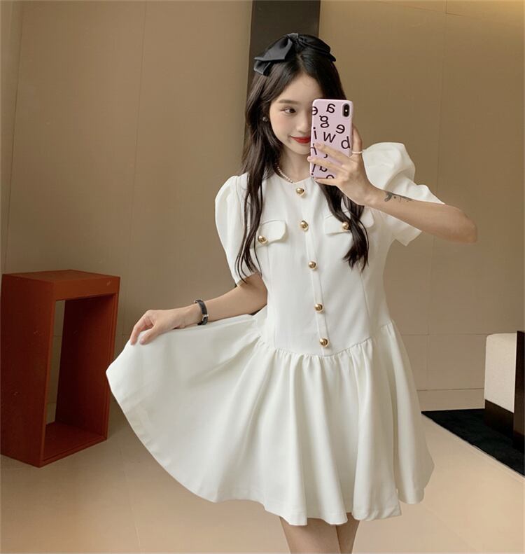 負担感のない綺麗さ ハイエンド 気質 受け取って腰 半袖 夏 新品 ミニスカート ギャザリング ワンピース YUHJ66985