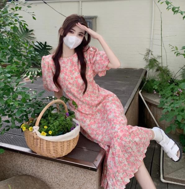 春夏新作 女 レディース ハイウエスト 無地 半袖 ロング ワンピース 台型スカート S-L GGHN59667b