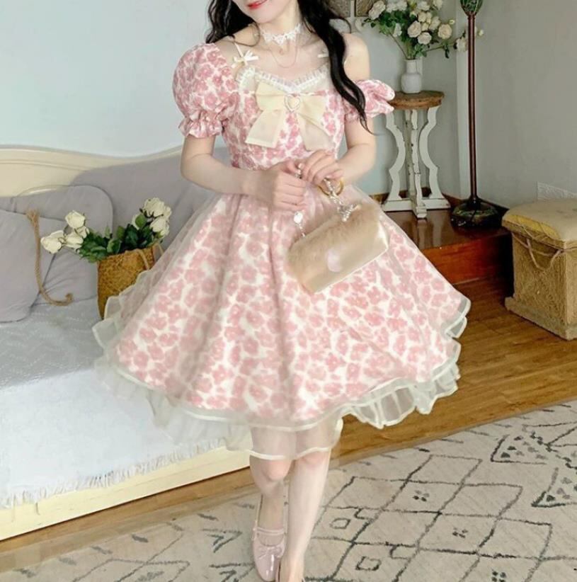 春夏新作 女 レディース ハイウエスト 半袖 チュール パフスリーブ ミニ ワンピース ドレス 台型スカートYUIKJMP26398005