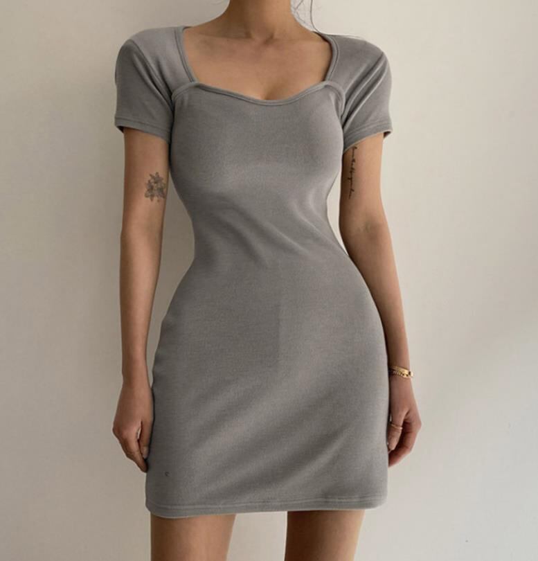 春夏新作 女 レディース ハイウエスト 半袖 ミニ ワンピース ドレス タイトスカート 3色YUIKJMP26398030