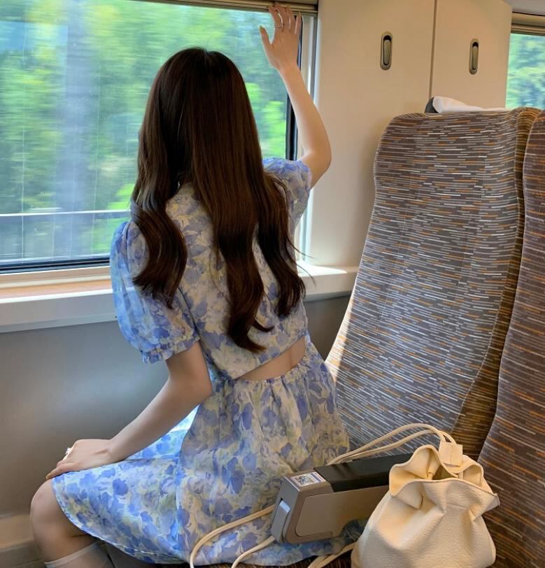 春夏新作 女 レディース ハイウエスト 半袖 花柄 ミニ ワンピース ドレス 台型スカートGYTRMZ369851021