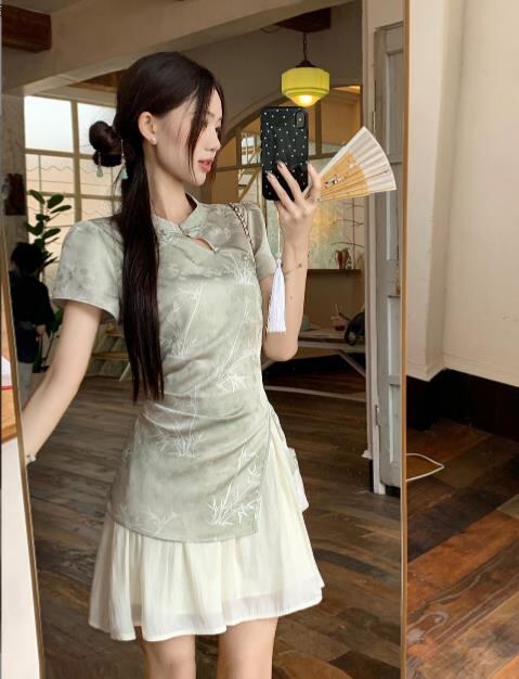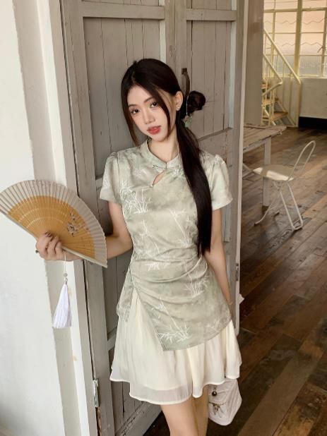 春夏新作 女 レディース ハイウエスト 半袖 ミニ ワンピース ドレス 台型スカートGYTRMZ369851040