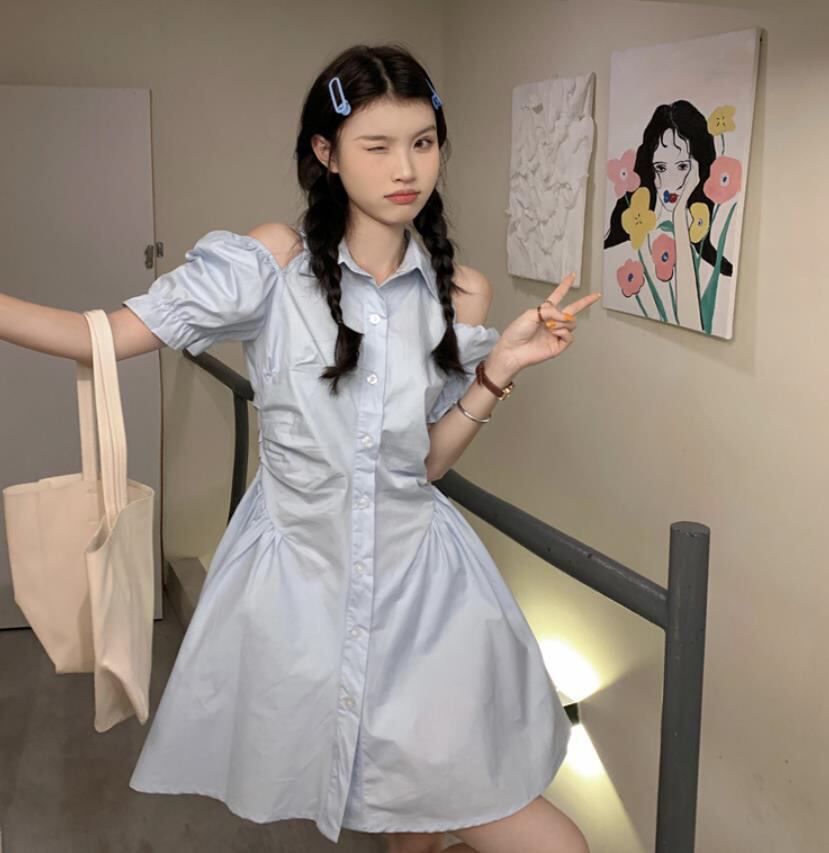 春夏新作 女 レディース ハイウエスト 半袖 ミニ ワンピース ドレス 台型スカート M/LTYNBDJ235871023