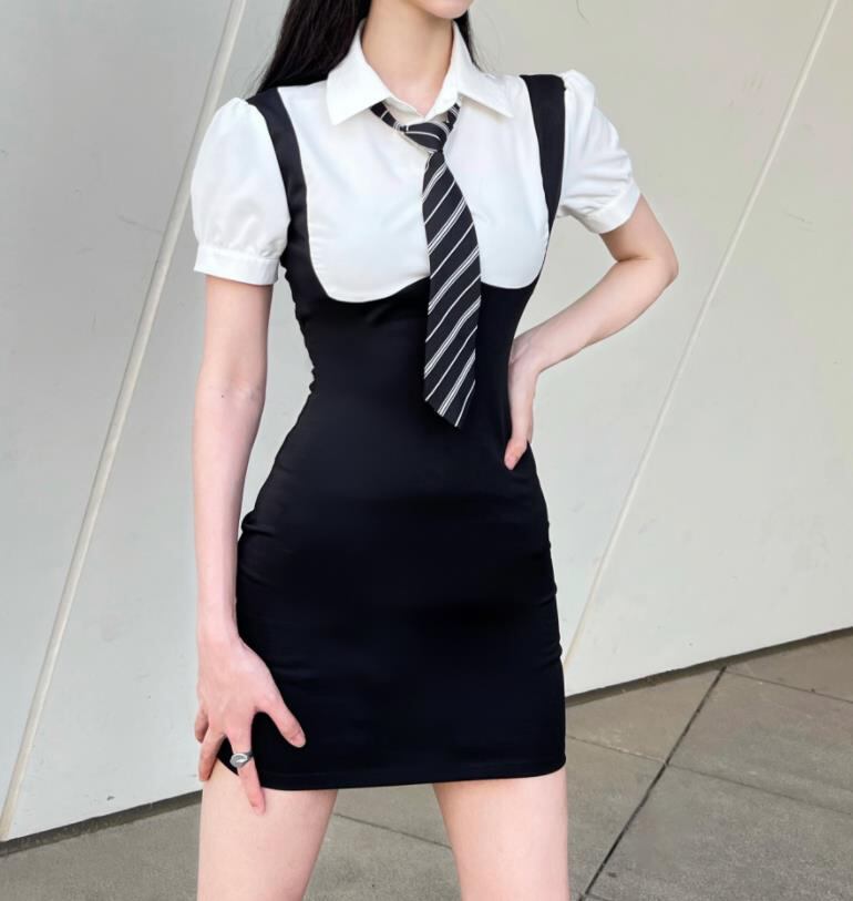 春夏新作 女 レディース ハイウエスト 半袖 ミニ ワンピース ドレス タイトスカート S-LTYNBDJ235871046