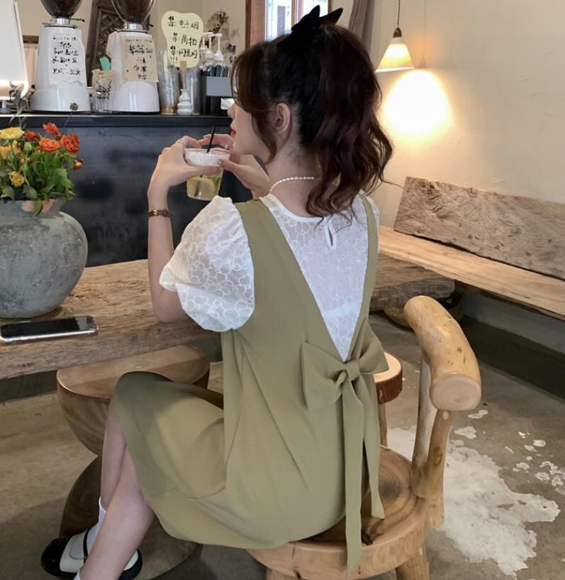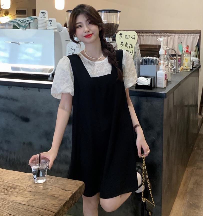 春夏新作 女 レディース ハイウエスト 半袖 レース ミニ ワンピース ドレス 台型スカートTYNBDJ235871061a