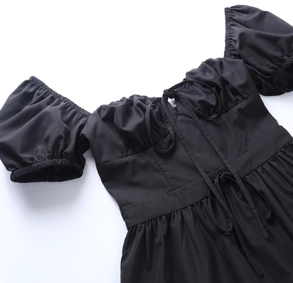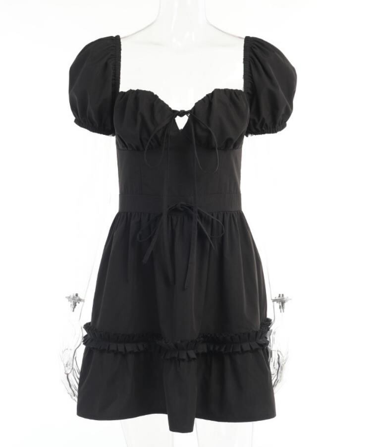 春夏新作 女 レディース ハイウエスト 半袖 パフスリーブ ミニ ワンピース ドレス 台型スカート 2色TREWPL36975109