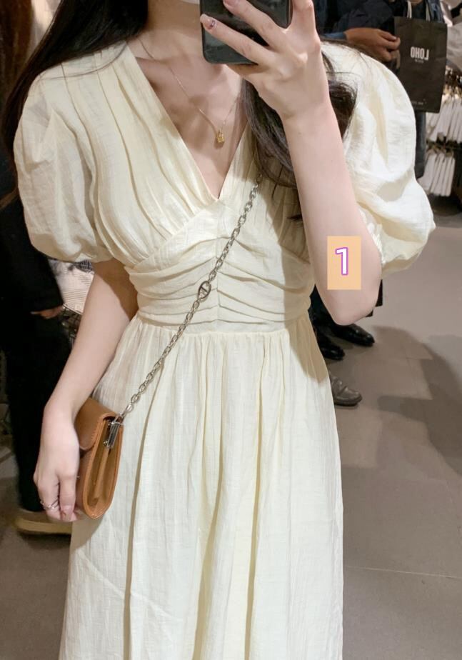 春夏新作 女 レディース ハイウエスト 半袖 花柄 パフスリーブ ロング ワンピース 台型スカートEERMJNB3697013