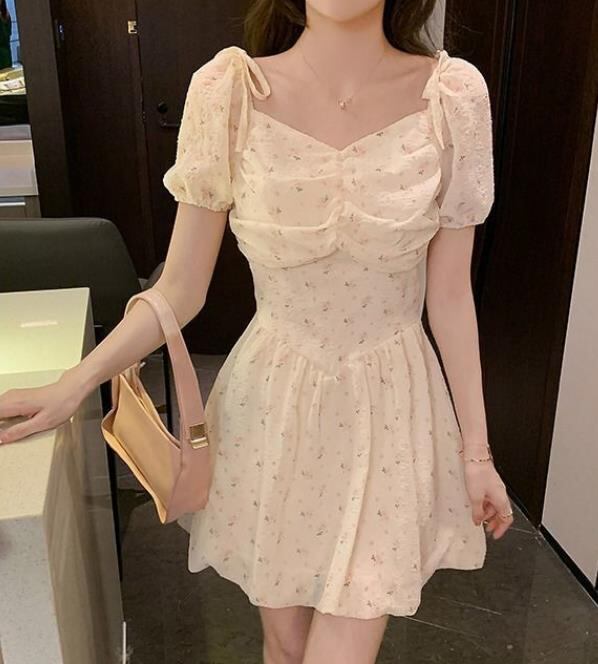 春夏新作 女 レディース ハイウエスト 半袖 パフスリーブ ミニ ワンピース ドレス 台型スカートTYNBDJ235871026