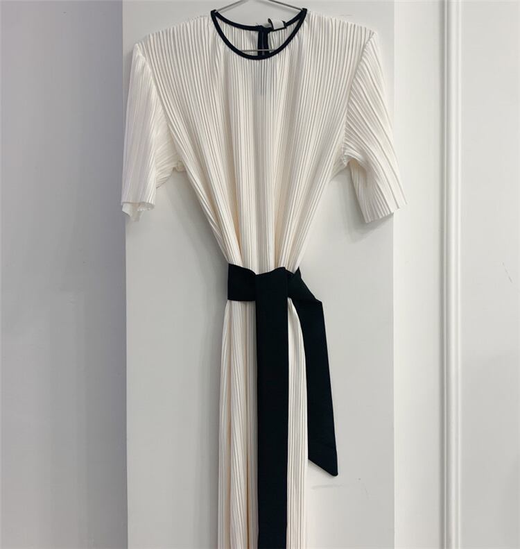 通勤する 気質 エレガント 簡約 ラウンドネック プリーツ バンディング 半袖 ワンピース