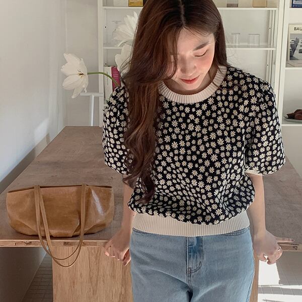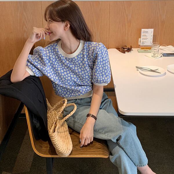 春夏新作 韓国風レディース服 半袖ニットセーター Tシャツ ミニフラワー 可愛いTREWPL36975118