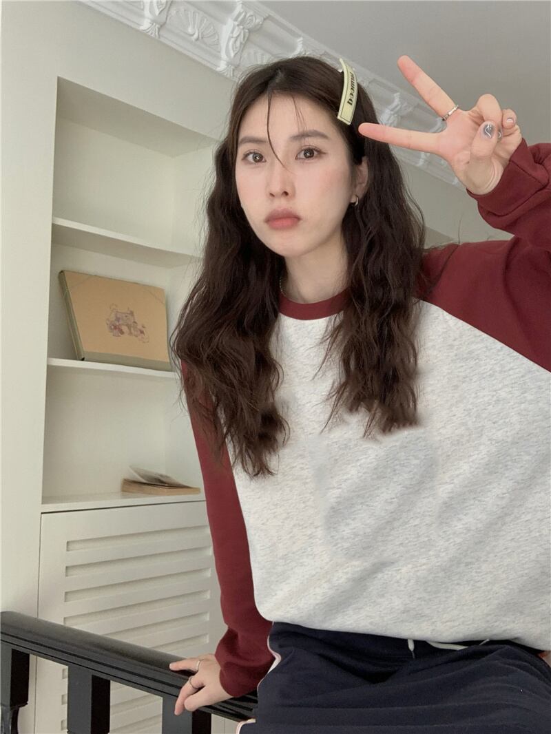 秋冬新作 ins超人気 韓国系 デザイン性抜群 配色 切り替え トレーナー★# GGFR24009
