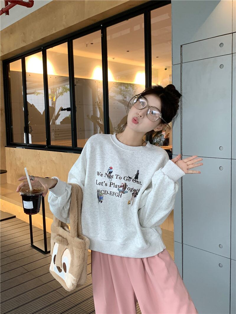 秋冬 新作 レトロ 設計感 ゆったり 長袖 韓国風 裏起毛 トレーナー★# GGFR24031