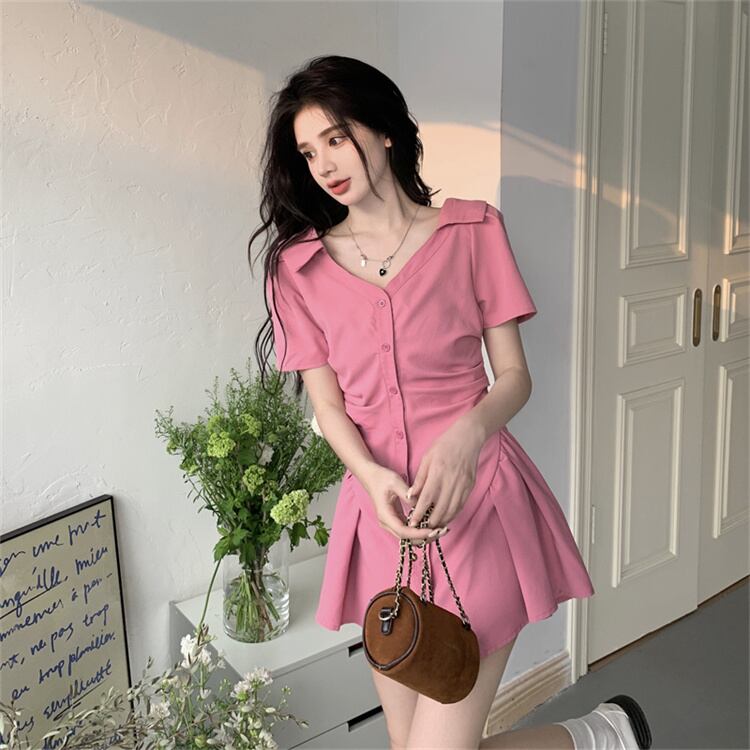 夏 新作 ワンピース 気質 受け取って腰 ミニスカート 半袖