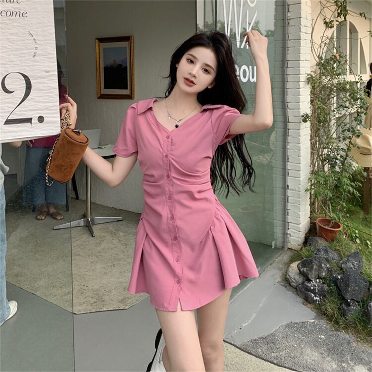 夏 新作 ワンピース 気質 受け取って腰 ミニスカート 半袖