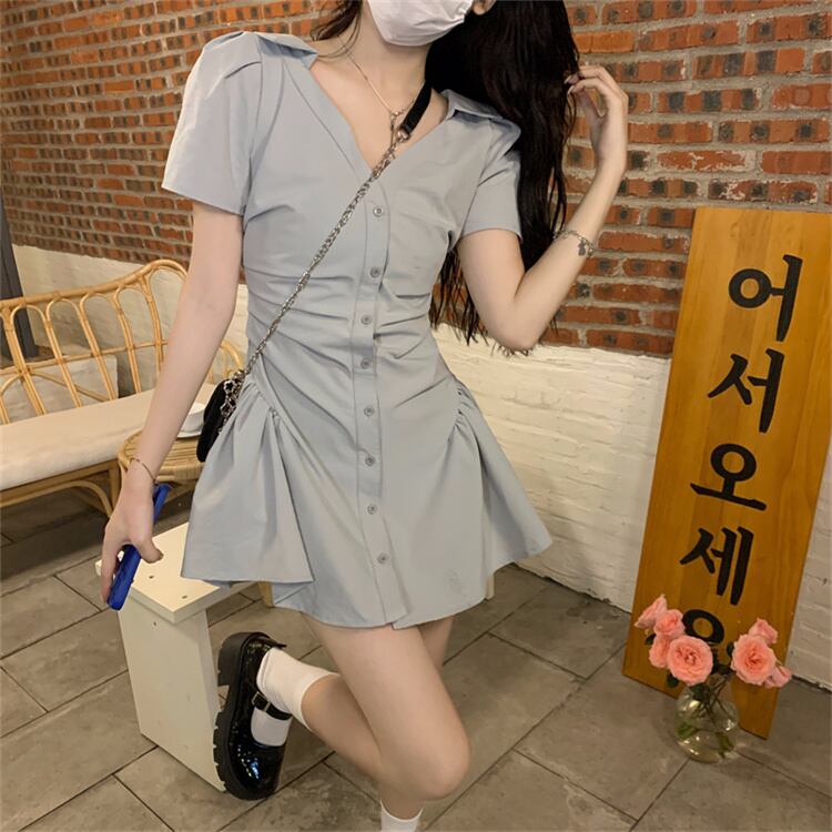 夏 新作 ワンピース 気質 受け取って腰 ミニスカート 半袖