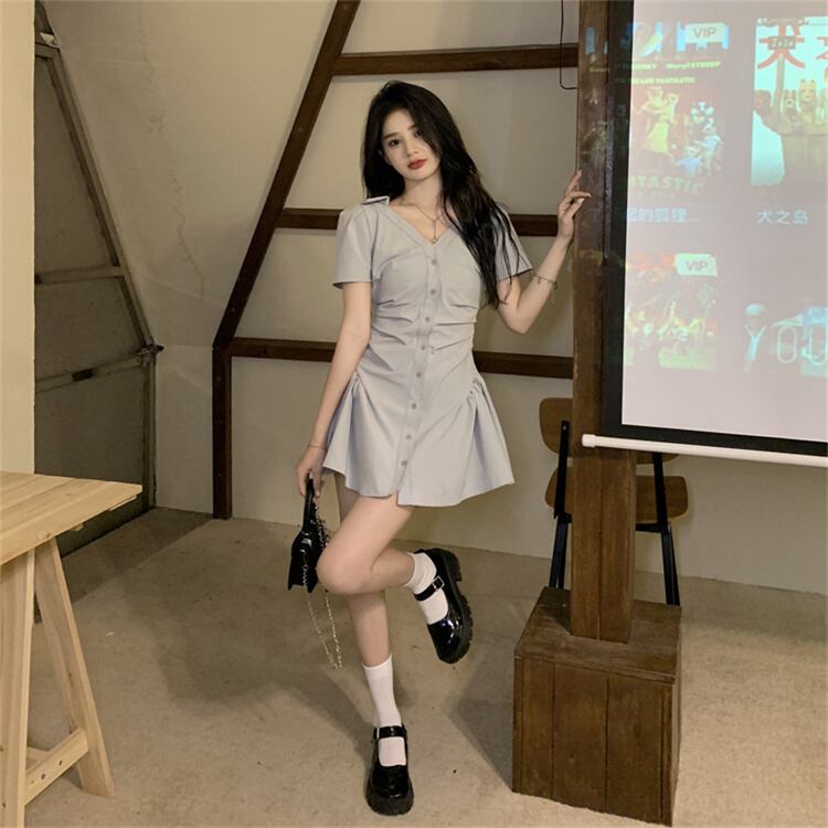 二文字:絶美 夏 新作 ワンピース 気質 受け取って腰 ミニスカート 半袖★# GYKDQQ639866