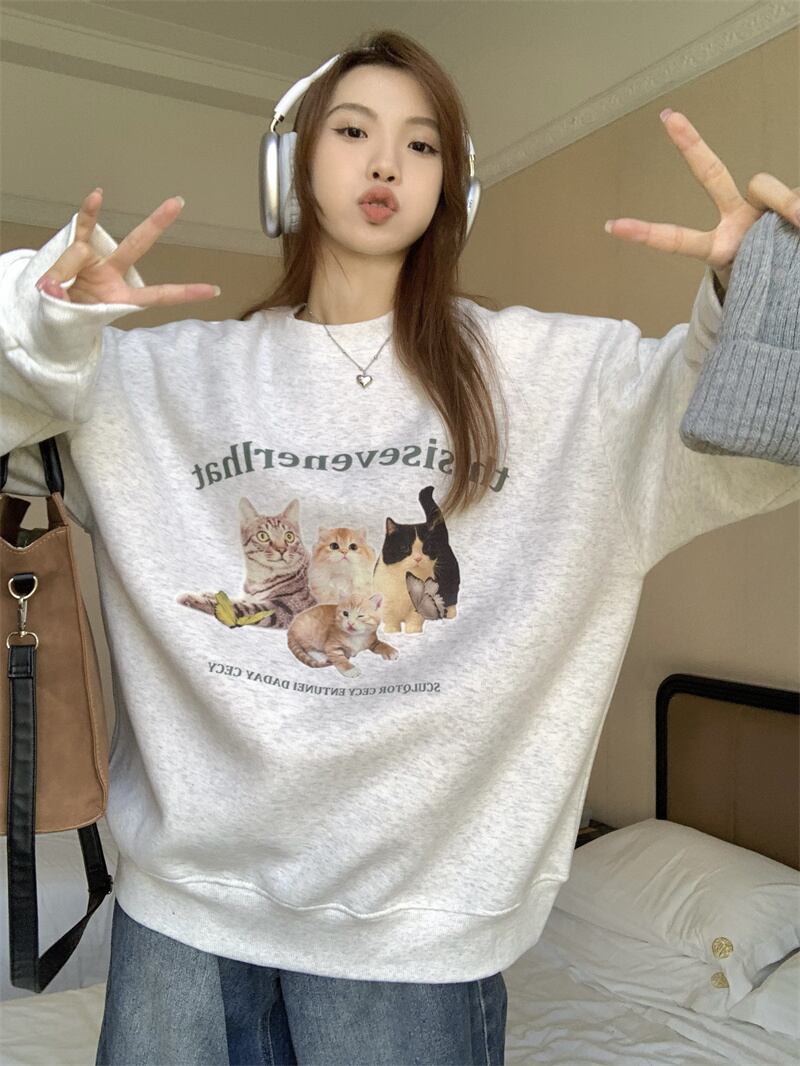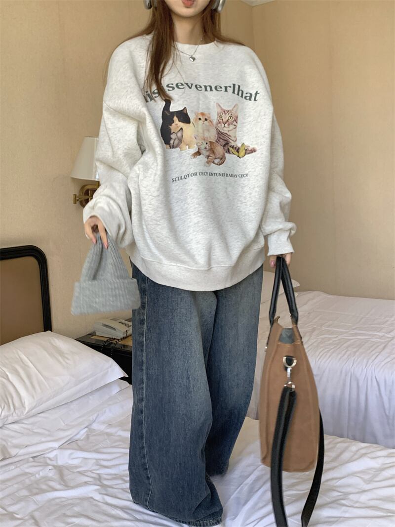 冬★ファッション おしゃれ韓国系 裏起毛 ラウンドネック プリント スウェット★# GGFR24030