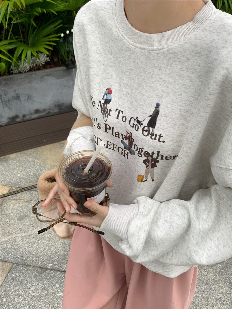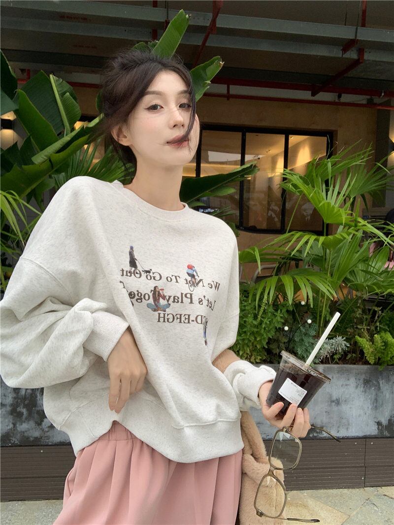 秋冬 新作 レトロ 設計感 ゆったり 長袖 韓国風 裏起毛 トレーナー★# GGFR24031