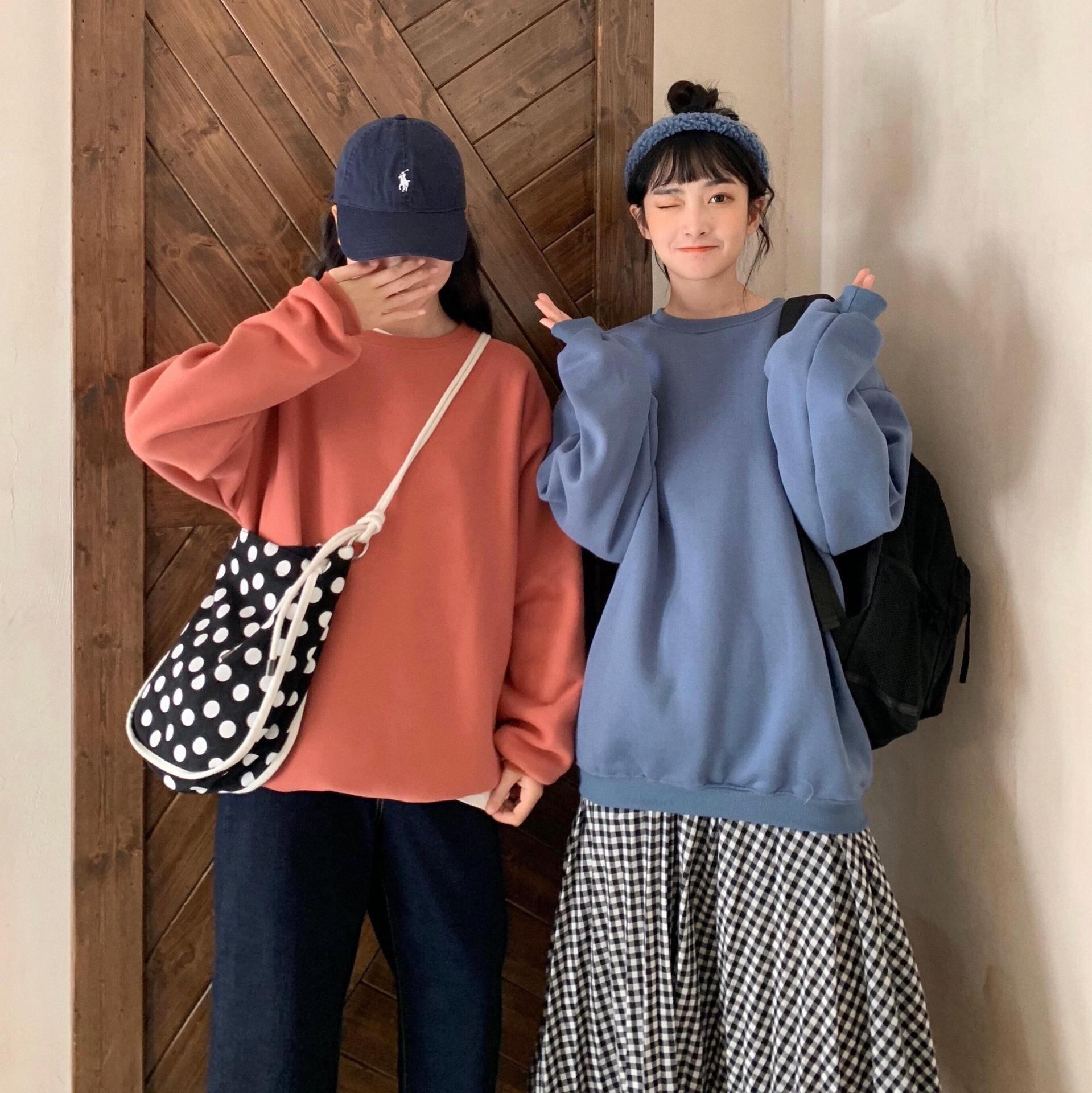 秋冬新作 レディース 長袖 裏起毛 プルオーバー ロングTシャツ トップス トレーナー 大きい★# VVi2736
