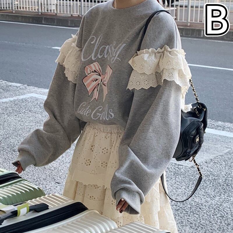トップス スウェット トレーナー クルーネック ラウンドネック プリント レディース★# VVi2782