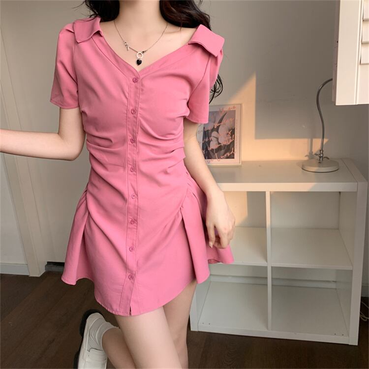 夏 新作 ワンピース 気質 受け取って腰 ミニスカート 半袖