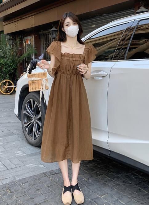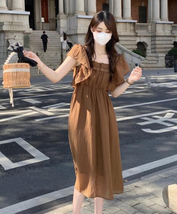 春夏新作 女 レディース ハイウエスト 無地 半袖 ロング ワンピース 台型スカート S-L★# GYKDQQ639873