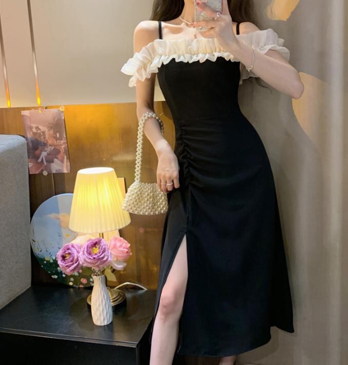 春夏新作 女 レディース ハイウエスト 半袖 ロング ワンピース タイトスカート 3色 S-L★# GYKDQQ639880