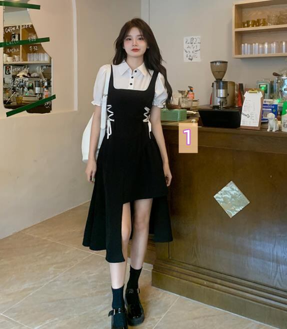春夏新作 女 レディース ハイウエスト 半袖 ロング ワンピース 台型スカート 2色 S-L★# GYKDQQ639881