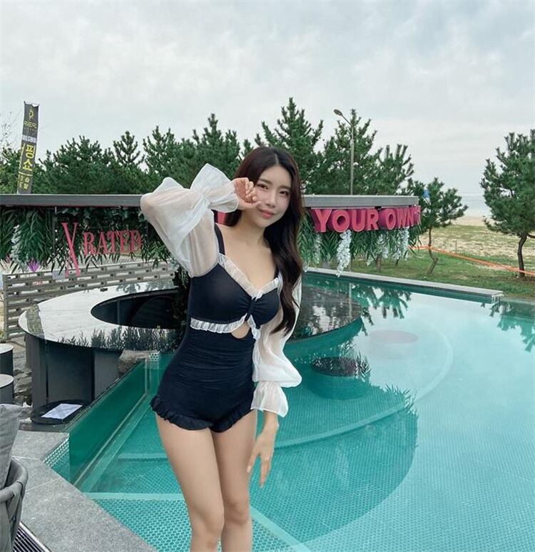 お腹を覆う 痩せている タイトスカート 温泉 気質 水着 長袖 胸の小さいギャザー