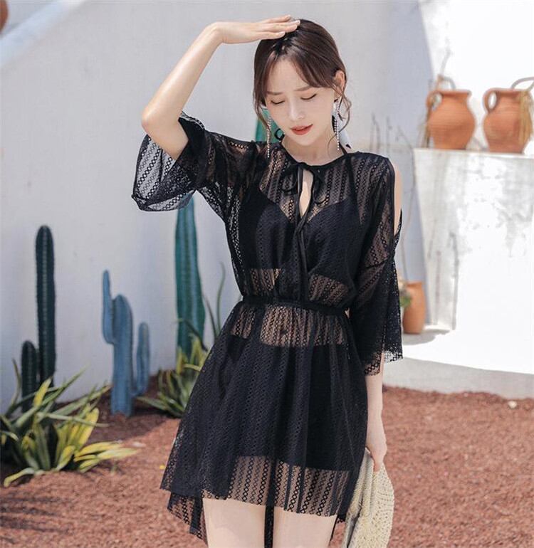 3点セット ハイウエスト スプリットスカート 温泉 水着 長袖 保守的 みずぎ 鋼托がある