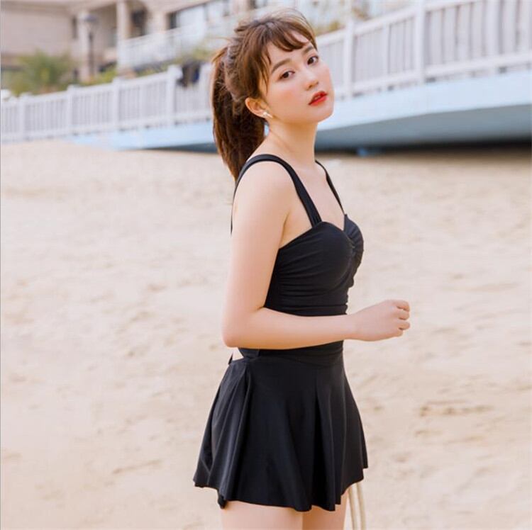 韓国語版 温泉 水着 無地 コンビネゾンスカート フラットアングル 保守的 スリム