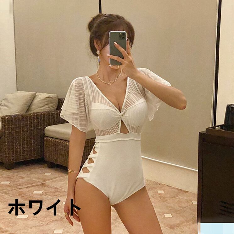 体型カバー水着 ワンピース水着 ワイヤーあり ママ水着 女性用 かわいい 白 黒 透け感あり レース 半袖 海★★ 水着 レディース おしゃれ ビーチ ビキニ リゾート プール 体型カバー スリム 可愛い インスタ映え セパレート 露出控えめ 盛れるハイウエスト 韓国 日焼け対策 競泳 スイムウェア日焼け防止 スタイルアップ 着痩せ