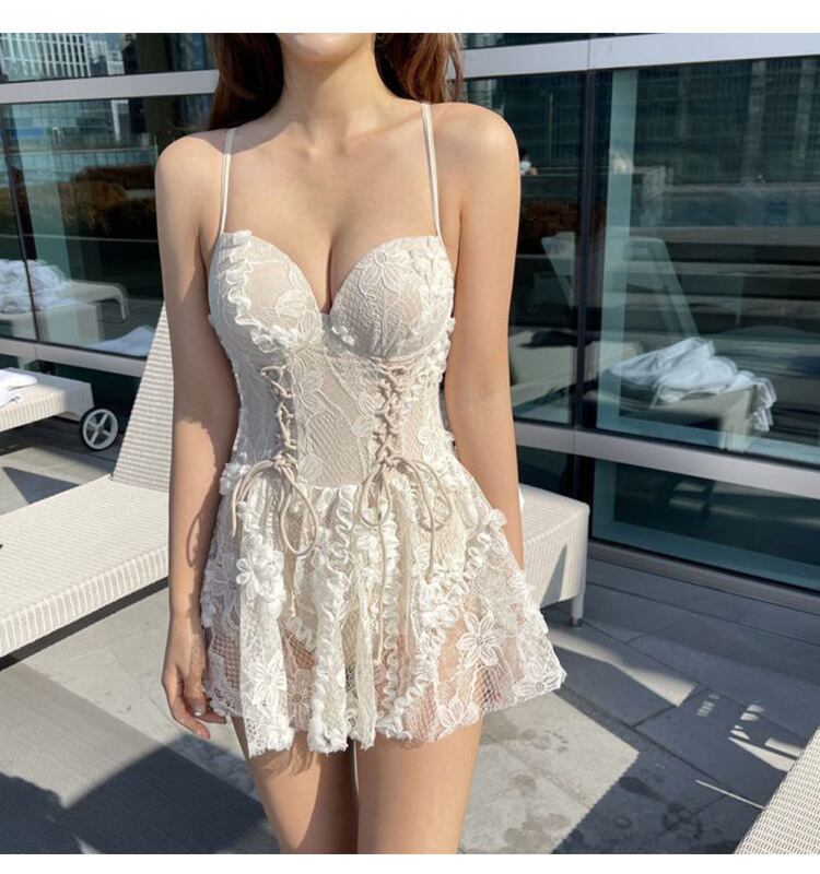 レース セクシー ワンピーススカート 水着 縫付 美しいバック スリム