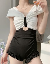 独特の存在感 温泉 コンサバティブ ファッション 半袖 水着 ギャザリング スモールチェストギャザリング★★ 水着 レディース おしゃれ ビーチ ビキニ リゾート プール 体型カバー スリム 可愛い インスタ映え セパレート 露出控えめ 盛れるハイウエスト 韓国 日焼け対策 競泳 スイムウェア日焼け防止 スタイルアップ 着痩せ