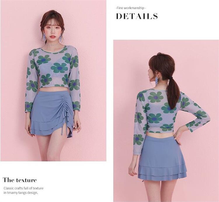 細見えする 温泉 長袖 フラットアングル フローラル 水着 3点セット 快適である★★ 水着 レディース おしゃれ ビーチ ビキニ リゾート プール 体型カバー スリム 可愛い インスタ映え セパレート 露出控えめ 盛れるハイウエスト 韓国 日焼け対策 競泳 スイムウェア日焼け防止 スタイルアップ 着痩せ