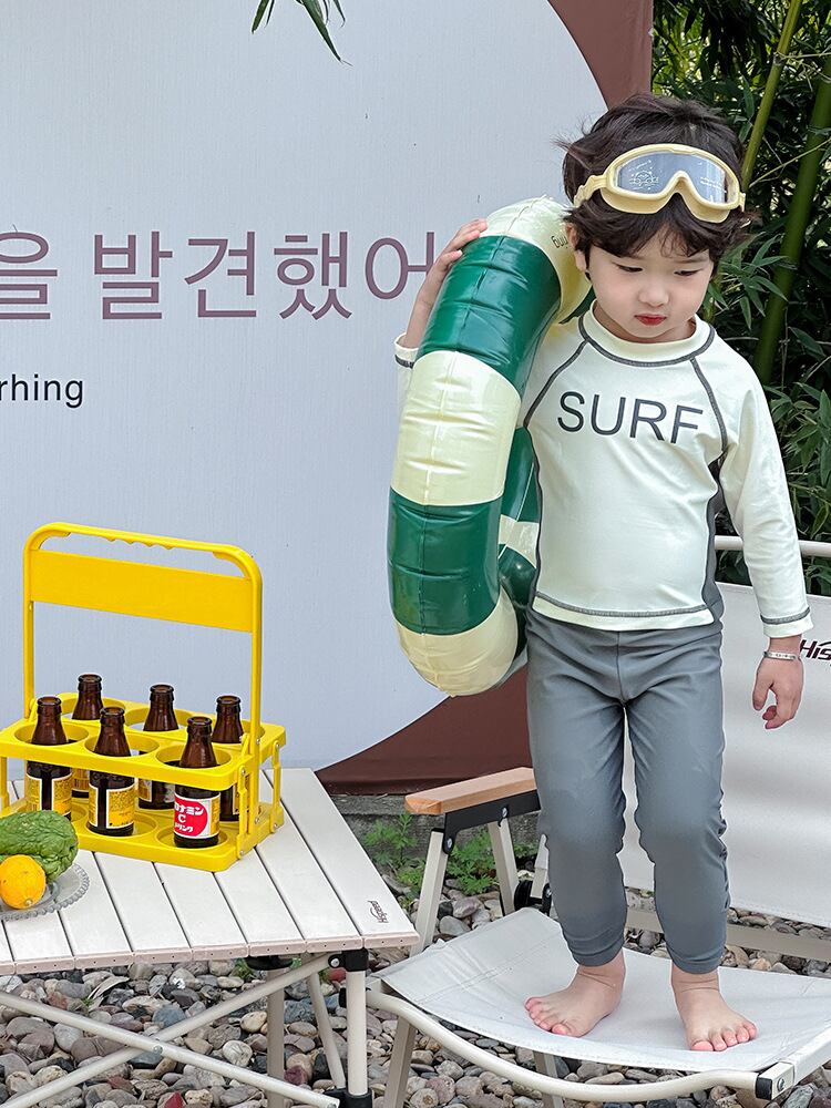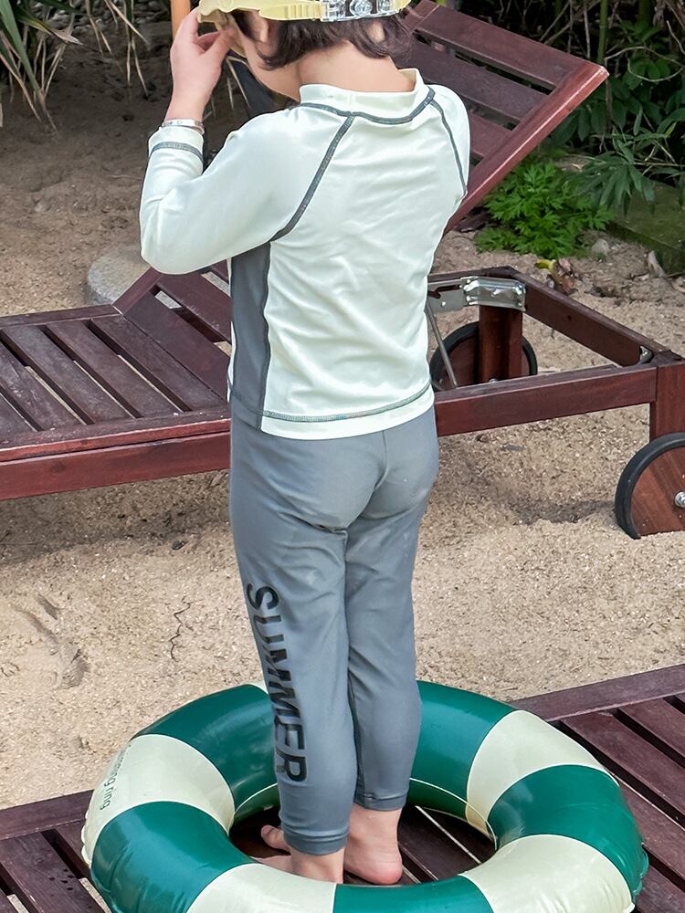 シンプルなデザインで子供スポーティスタイルにUV対策も欠かさない水着です。