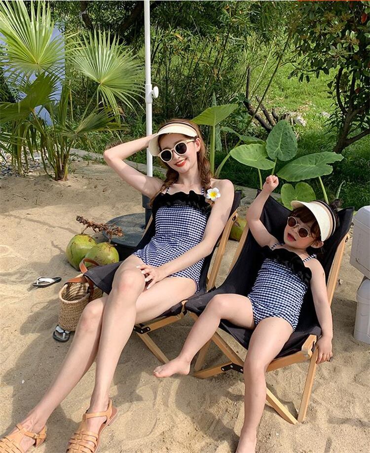 温泉 女の子 プリンセス かわいい 親子 母娘 子供 水着 女の子 格子縞 ワンピース水着
