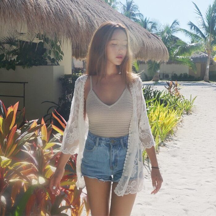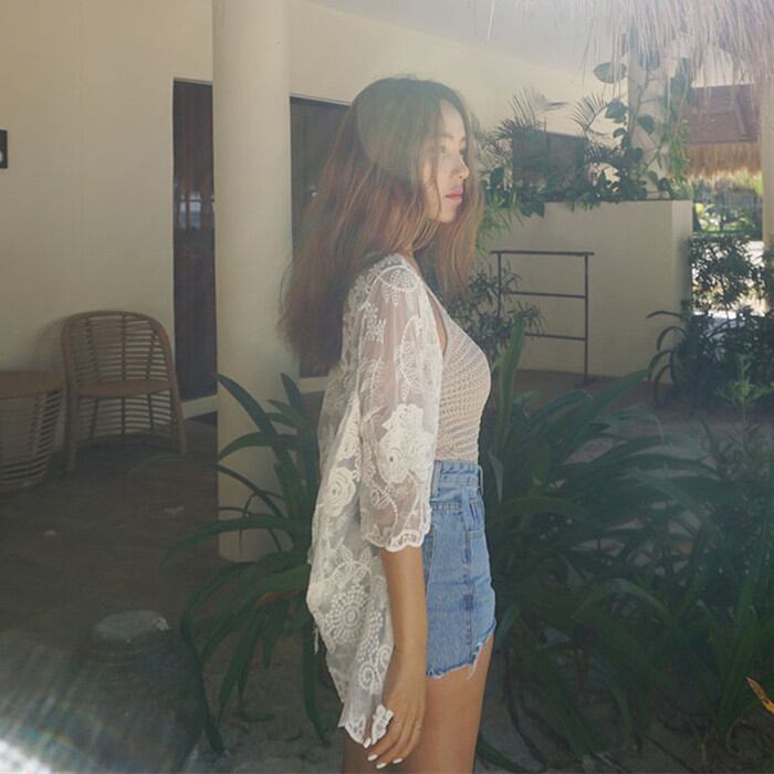ローズ柄のレースカーディガン。ビーチにはもちろん、普段使いもバッチリ決まるかわいいデザインです。羽織るだけでオシャレになれる夏の必須アイテム!■素材:コットン+アクリル