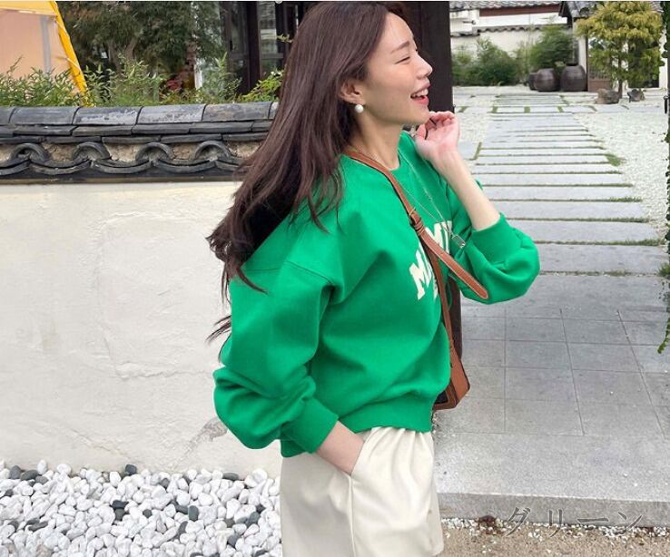全3色 スウェット トレーナー 長袖 切り替え 体型カバー 着痩せ LOGO ロゴ 英字 シンプル カジュアル★# GHJN373