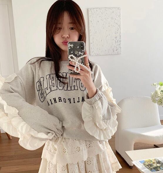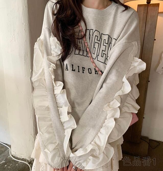スウェット トレーナー フリル 切り替え 体型カバー 着痩せ カジュアル パーカー カットソー