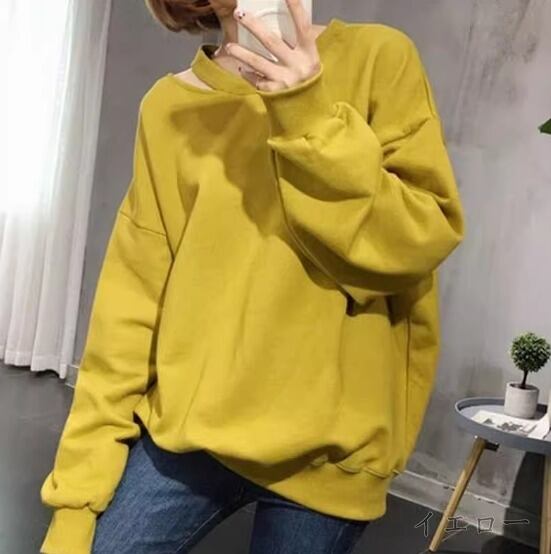 スウェット トレーナー 長袖 切り替え 体型カバー 着痩せ 無地 カジュアル★# GKK12855
