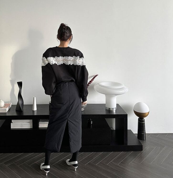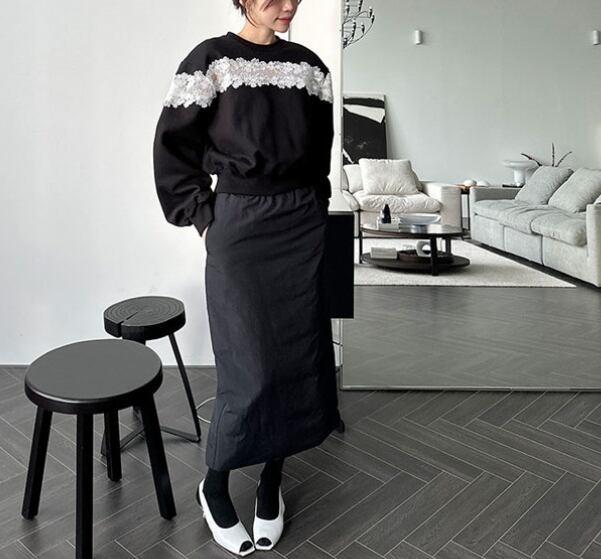 2023年秋冬INS 新作 レトロ 設計感 長袖 裏起毛 韓国風 レース飾り トレーナー★# UJIK336