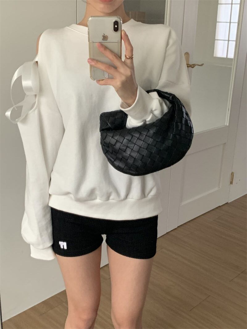 人気 美人度アップ 気質 レトロ おしゃれ カジュアル リボン スウエット★# YYKK2589