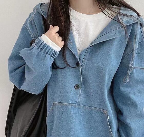 全2色 スウェット トレーナー 長袖 切り替え 体型カバー 着痩せ デニム シンプル★XSOIK552