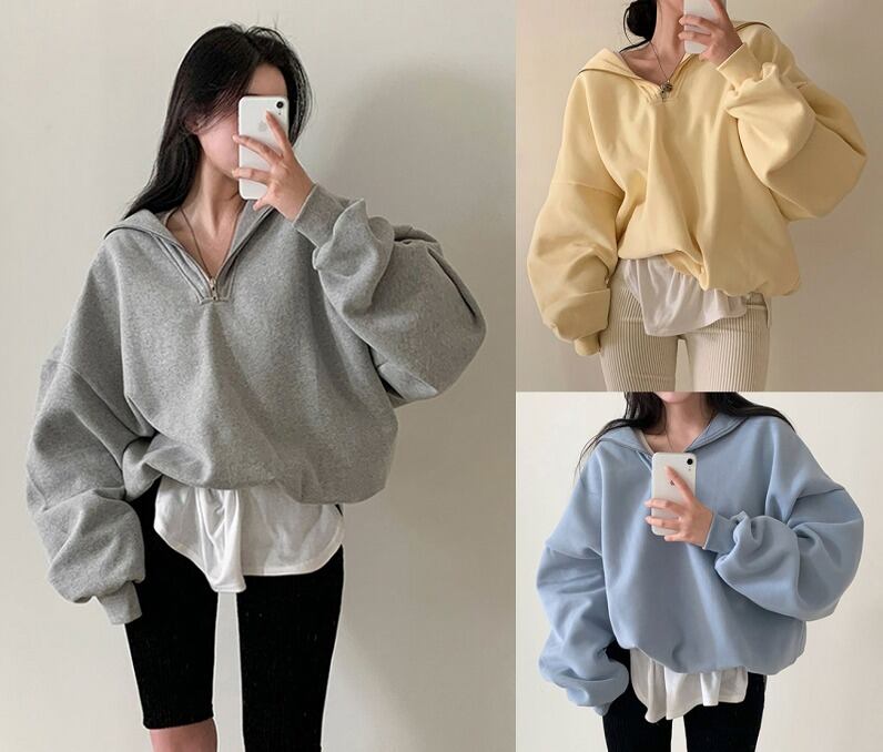 全5色 スウェット トレーナー 長袖 切り替え 体型カバー 着痩せ カジュアル★# QQOK77595