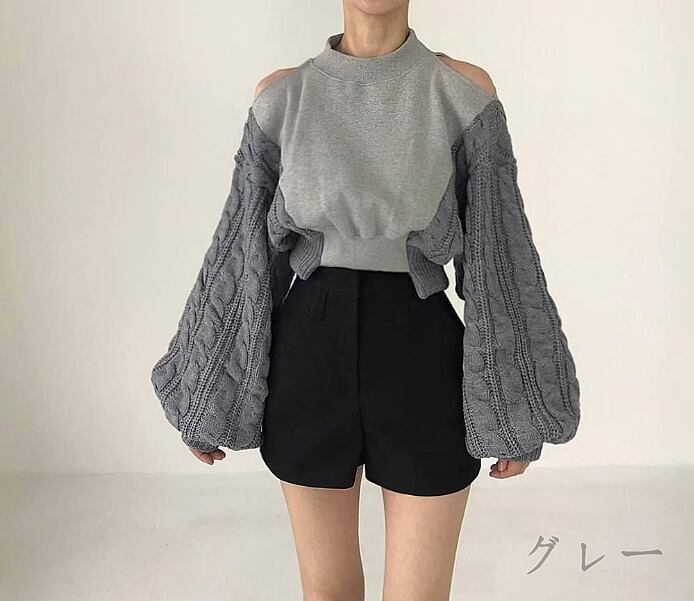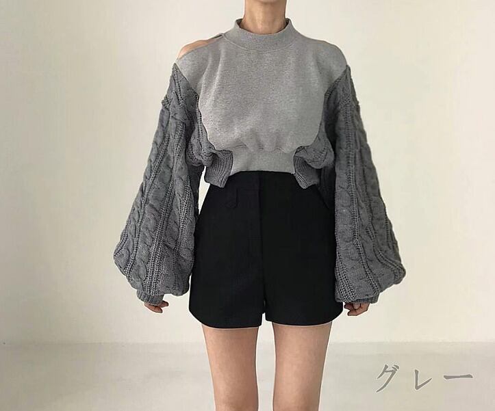 全2色 スウェット トレーナー 長袖 切り替え 体型カバー 着痩せ シンプル★# KKF2552